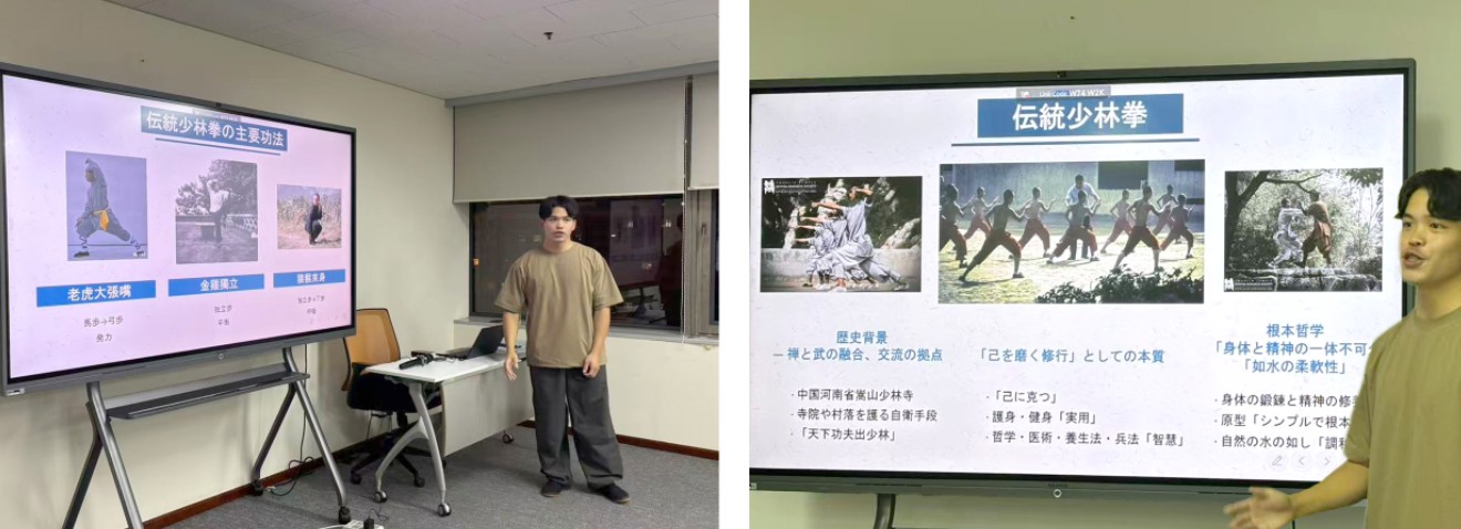 9月18日の文化講演会は、川島直央さんによる「伝統少林拳 からだとこころの調和」でした。川島さんは、現在北京体育大学武術学院博士課程在籍で、少林心意把研究会日本分会の代表もされるなど、伝統少林拳について、理論と実践の両面で学ばれ、紹介に務められています。
