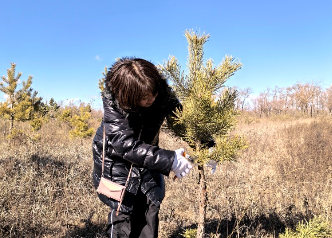 午前中は、植樹にまつわる樹木の種別に関する説明、育て方や剪定のポイントなどの講習会を経て、過去に植えられ3~5mほど成長した障子松の剪定作業を全員で行いました。安田総隊長(北京日本倶楽部副会長)を筆頭に何人かの分隊長を決めてチームを結成。チーム毎に協力しながら一日の作業を行うという方式でした。初回参加のメンバーは最初慣れない感じでしたが、徐々にコツをつかみ手際よく出来るようになり、次から次へと作業を続けかなり広範囲をカバー出来ました。