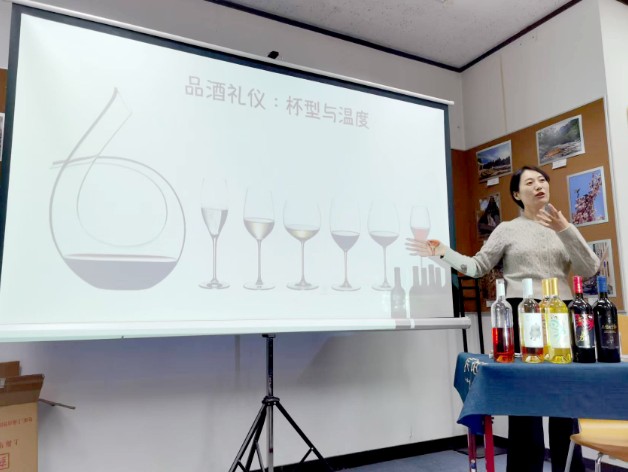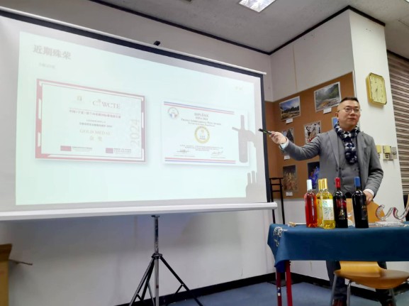 講座の前半では、山西がワイン造りに適した「北緯37度線」上に位置し、気候や土壌がもたらす恵みについて学びました。特に、長い歴史と豊富な経験が蓄積された山西ワインが、国内外の数々の賞を受賞し、高い評価を得ている背景について深く掘り下げました。さらに、ワイン初心者の方にも気軽に参加いただけるよう、1本100元未満で質の高い入門ワインも多数ラインナップされている点もご紹介いただきました。