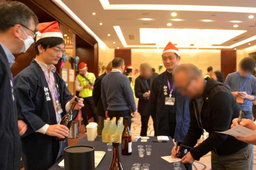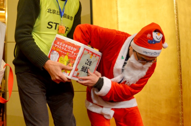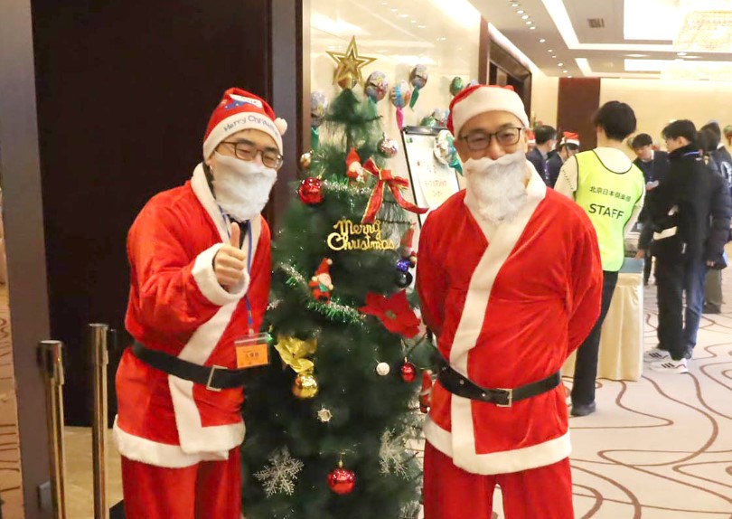 北京では珍しい日本式(?)クリスマスパーティー。入口にはサンタさんも登場して、オシャレした来場者たちと写真撮影。