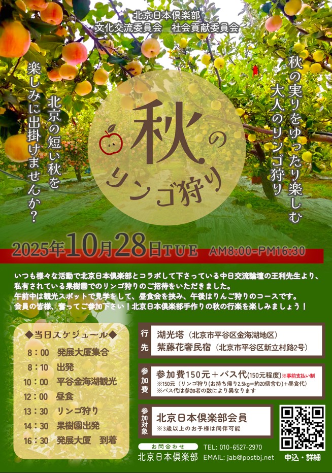 今回は平日の開催になりますが、北京の短い秋を楽しみに出掛けませんか?
