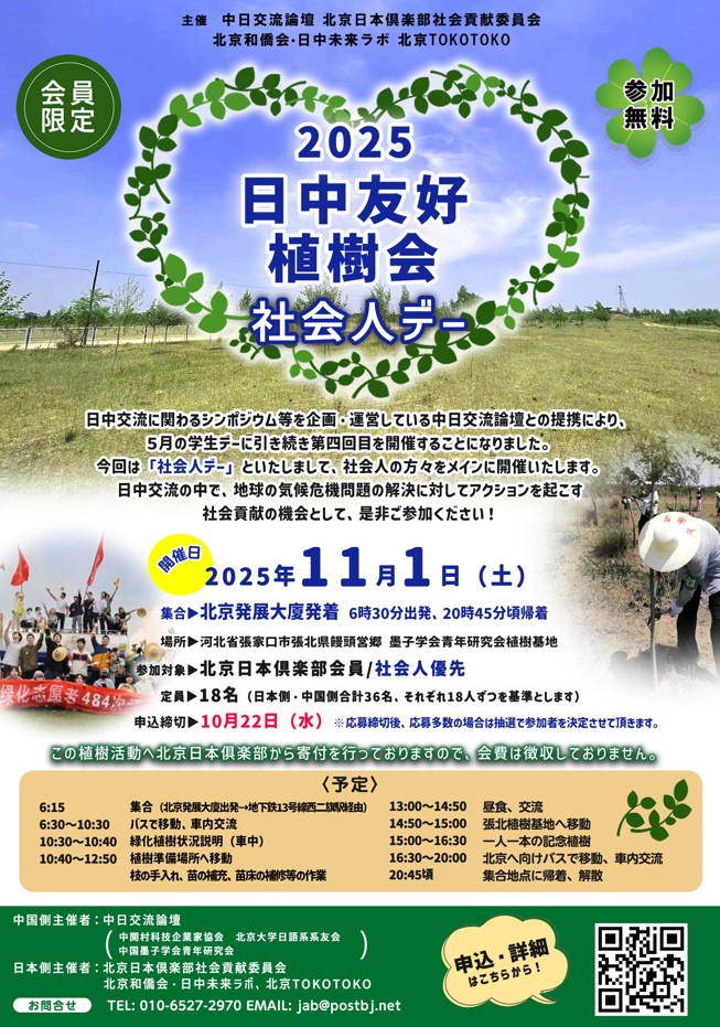 2025年11月1日(土)第四回「日中友好植樹会2025・社会人デー」開催のご案内