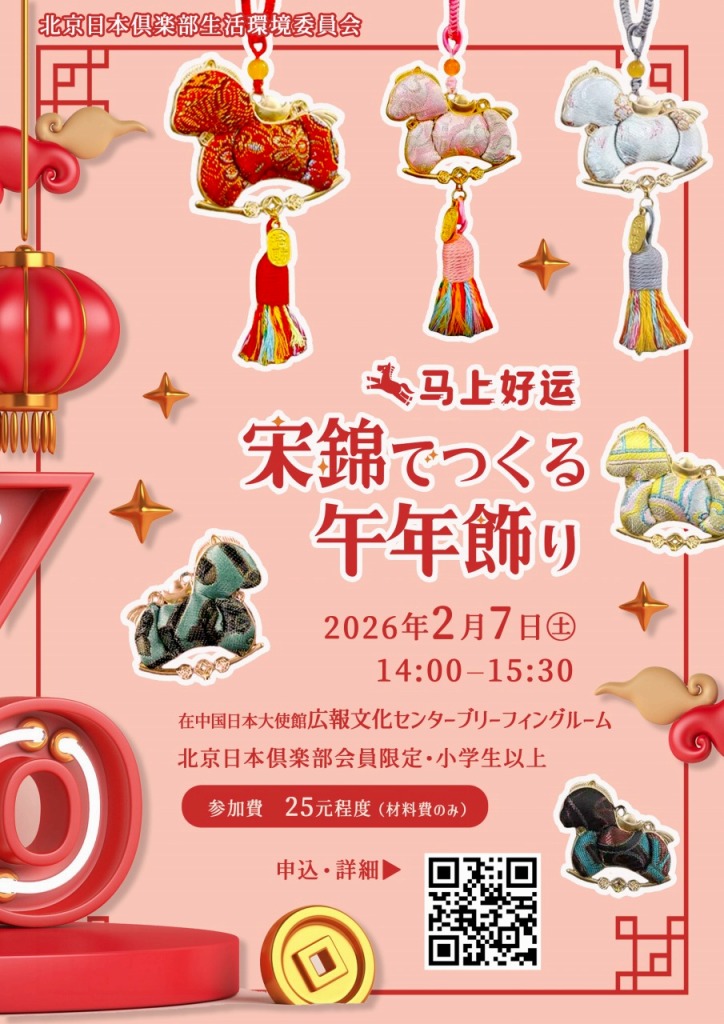 2月7日(土)「馬上好運◆宋錦でつくる午年飾り」を開催します!
