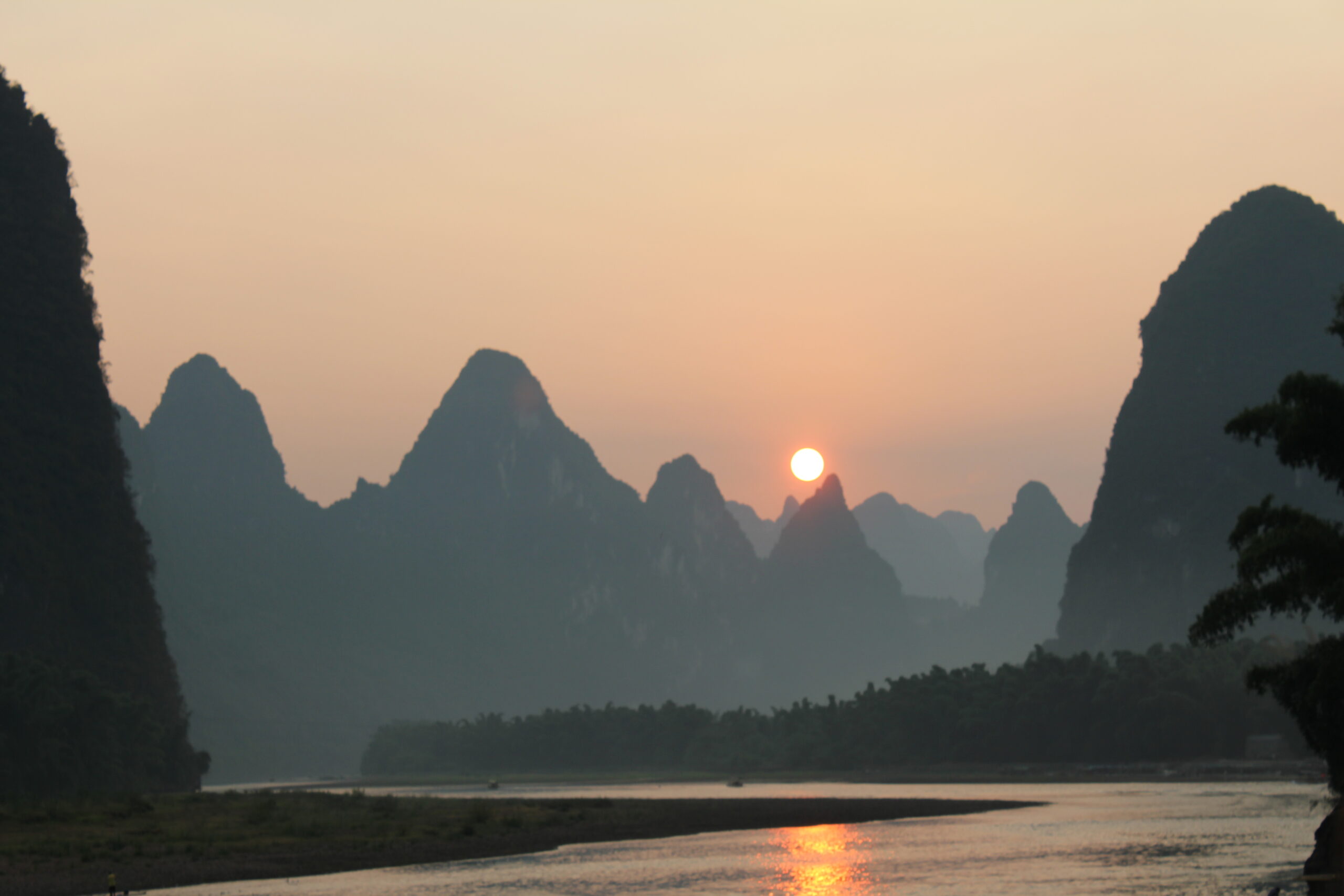 陽朔観光◆十里画廊:〇月亮山、◆大榕樹(ガジュマル)陽朔奇峰と田園風景の織り成す景色◆“遇龍河”をお楽しみ下さい。