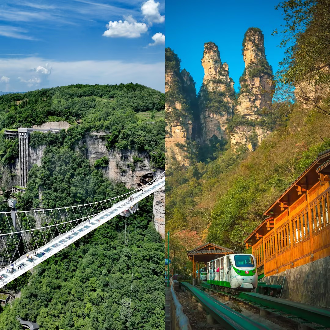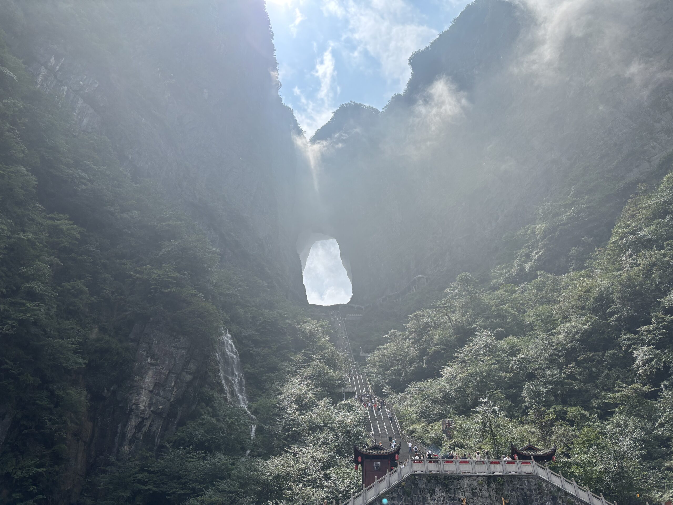 さらに、標高1,300メートルの絶壁に自然が穿った巨大なアーチ 「天門洞」 が、まさに「天界への門」のようなその姿は、訪れる者を圧倒します。