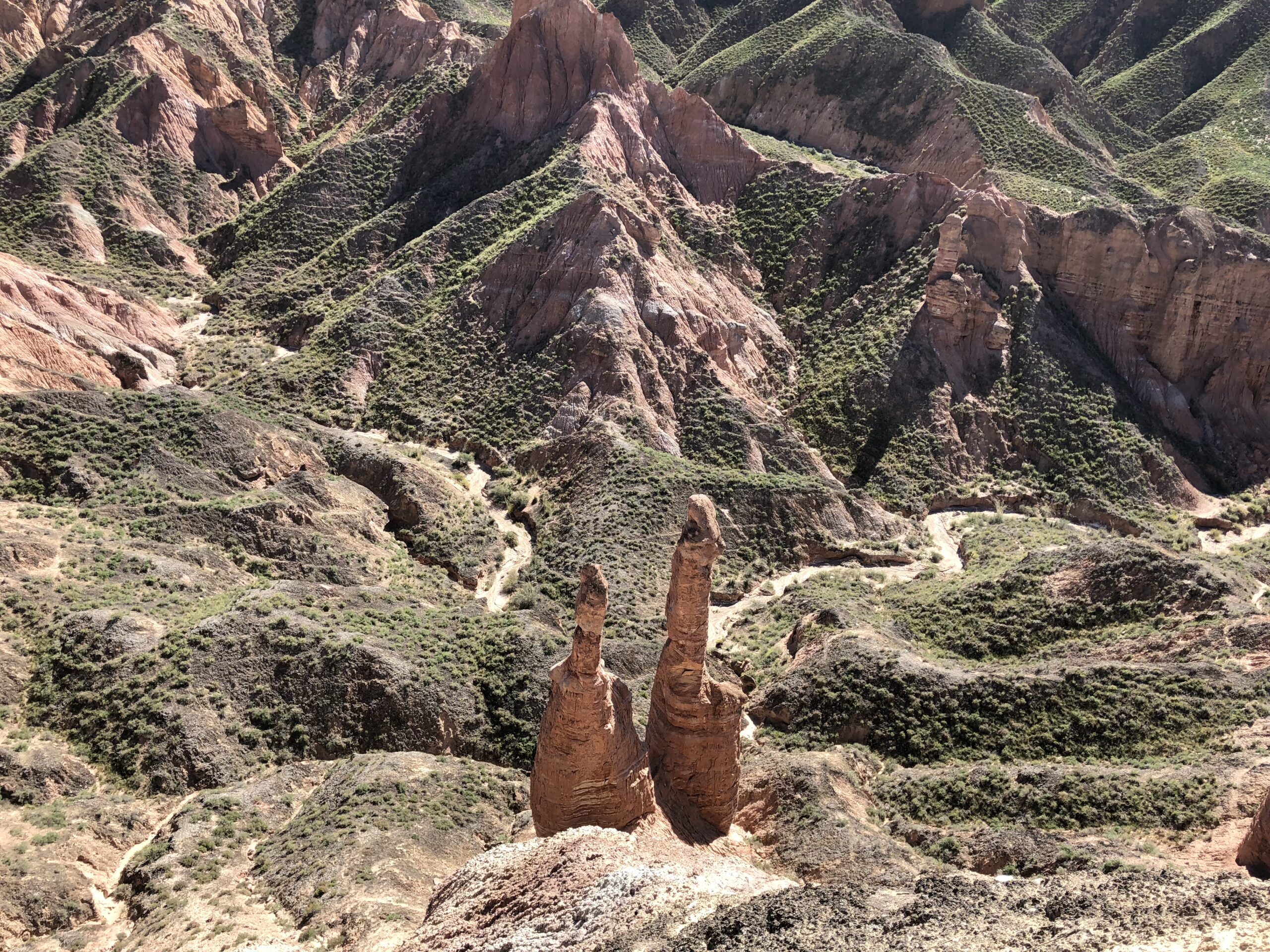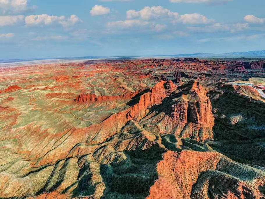 氷溝丹霞公園は、色彩よりも造形が語る静謐な世界。歳月が風と雨を筆にして、赤い岩を削り、柱を立て、奇峰を生み出しました。そびえる岩柱の間を歩けば、時計の針は逆回転し、太古の地球の鼓動が耳元で響きます。