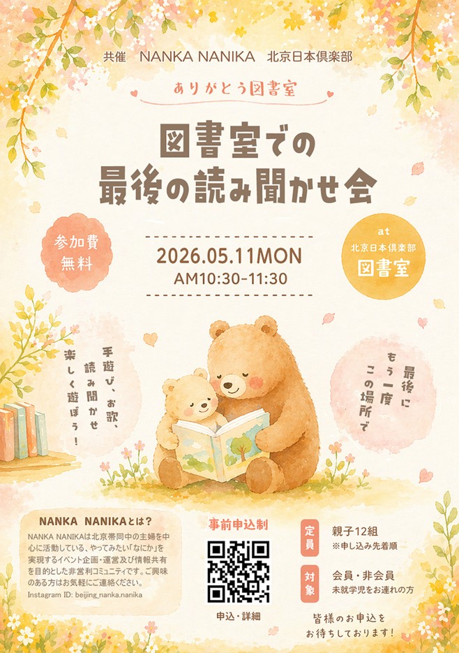 対象:北京日本倶楽部会員/非会員 ※未就学児をお連れの方に限ります