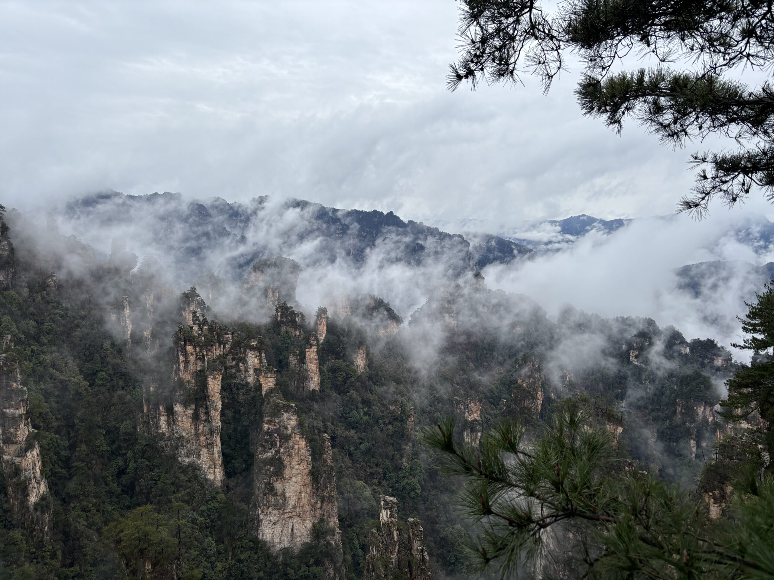 3,000本以上の岩柱が雲海から突き出し、漢の時代に隠れ住んだ張良の伝説や、映画『アバター』のインスピレーションの源となった、地球が数億年かけて創り上げた「生きる山水画」です。
