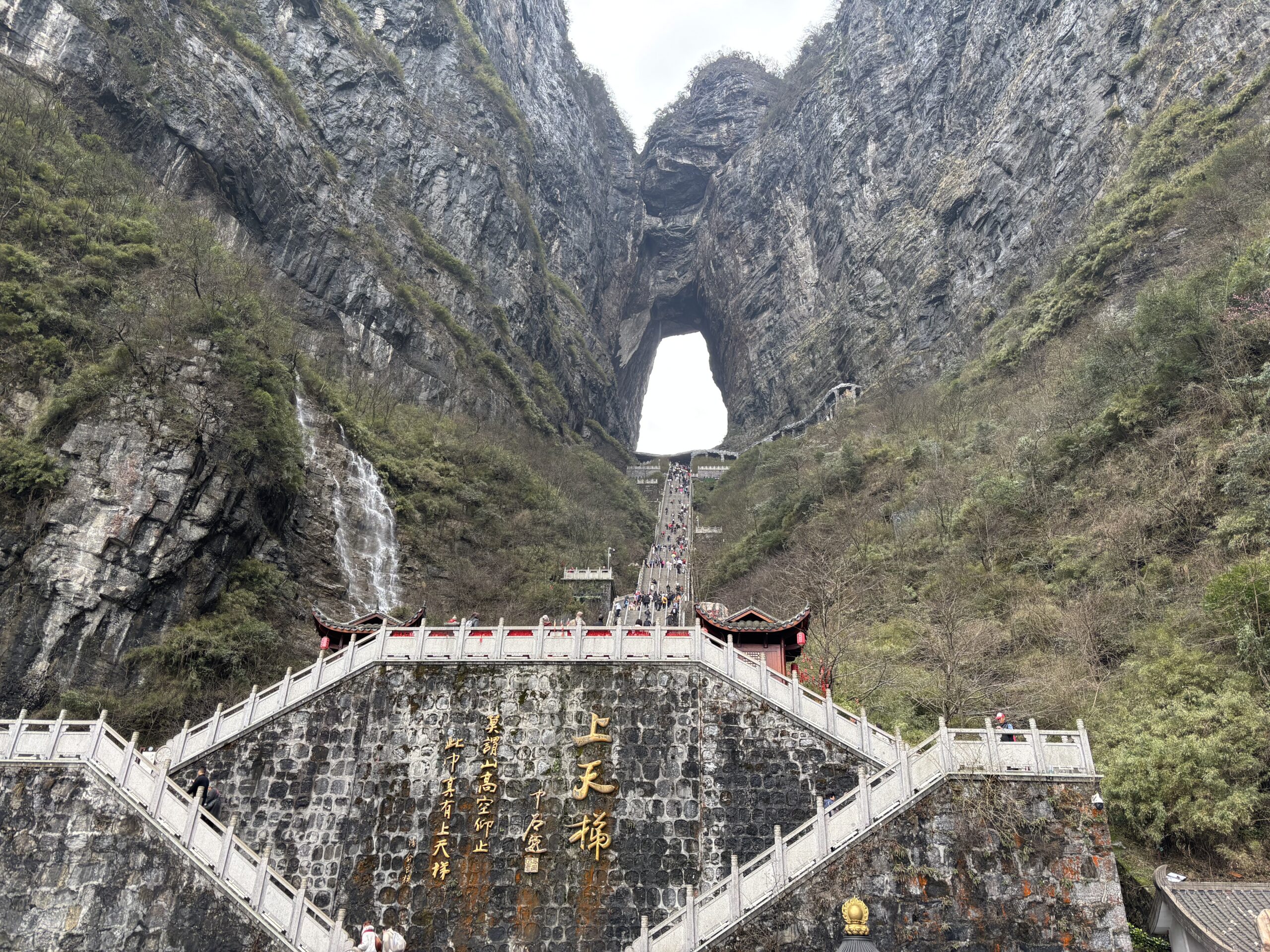 さらに、標高1,300メートルの絶壁に自然が穿った巨大なアーチ 「天門洞」 が、まさに「天界への門」のようなその姿は、訪れる者を圧倒します。