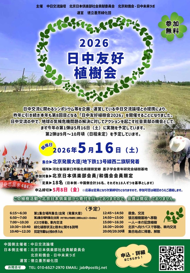 2026年5月16日(土)「日中友好植樹会2026」開催のご案内
